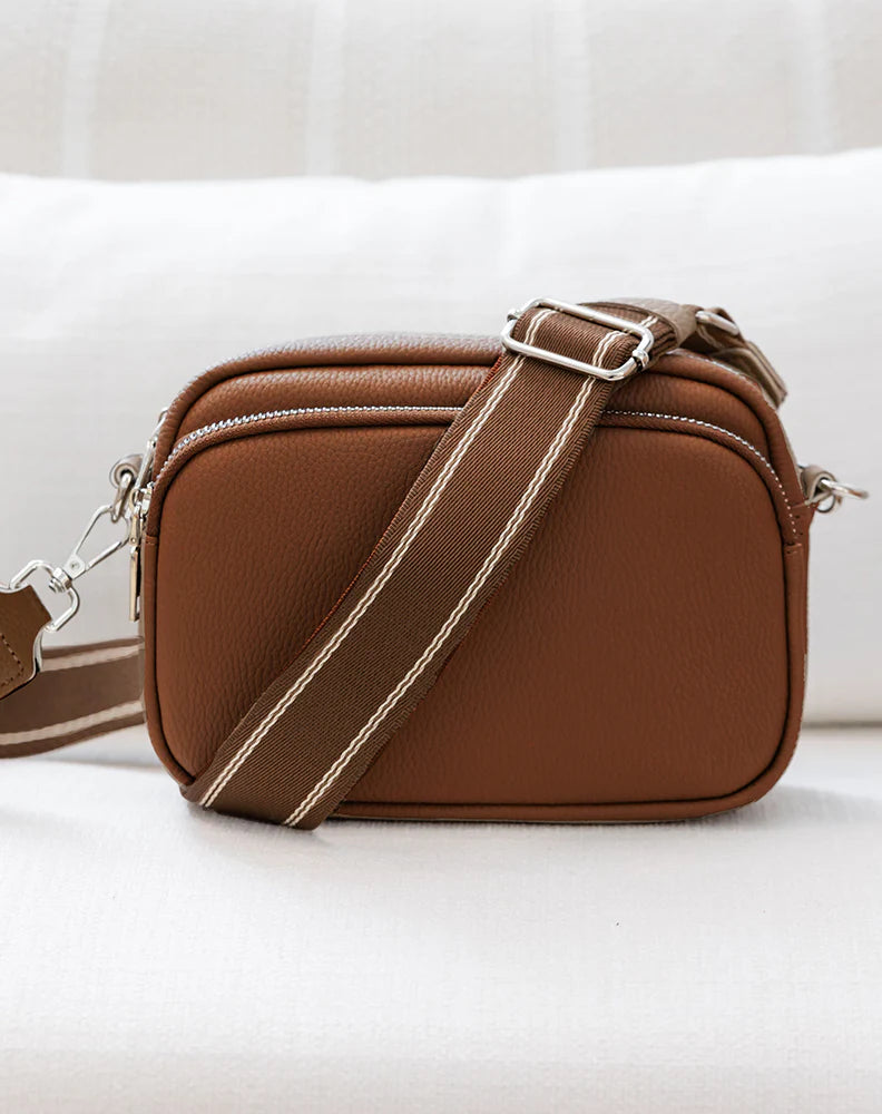 Sunshine Handbag Plaited Handle Striped Side Detail Brown Free Size