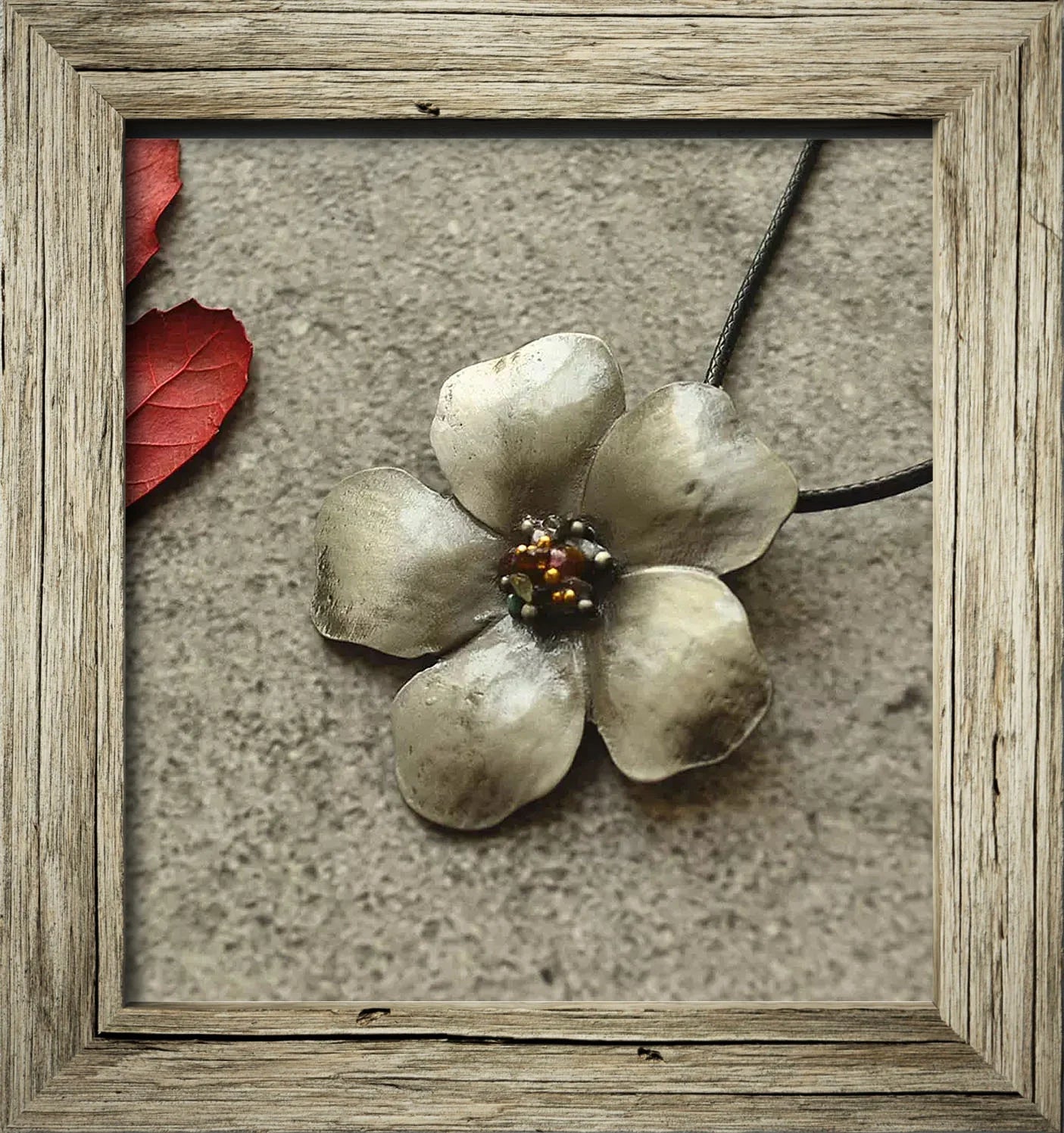 Kokomia Necklace Leather Cord Flower Pendant