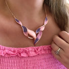 This stunning high quality statement necklace is made from nickel free alloy, is rose gold plated (tarnish resistant) and features beautiful shimmery enamels & resin in soft pink & purple. The exquisite colours in this necklace lends itself to be styled casually for day or elevate your look for evening. This necklace is 18" on the shortest link or 20" on the longest. Expect many compliments on this stunning 45.necklace.