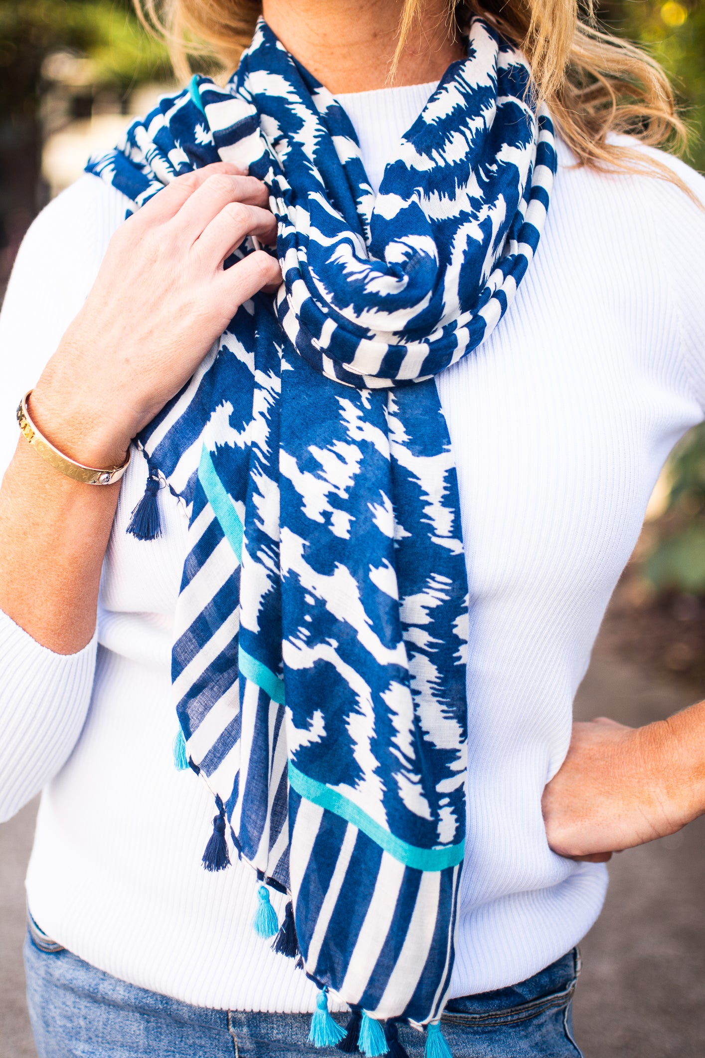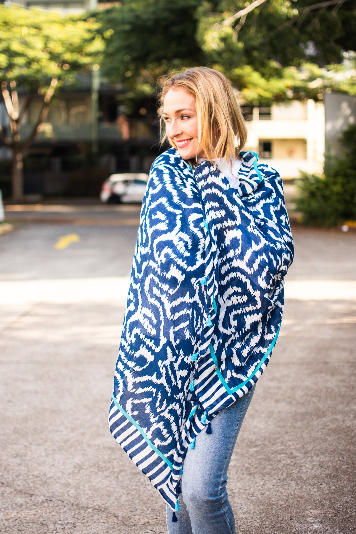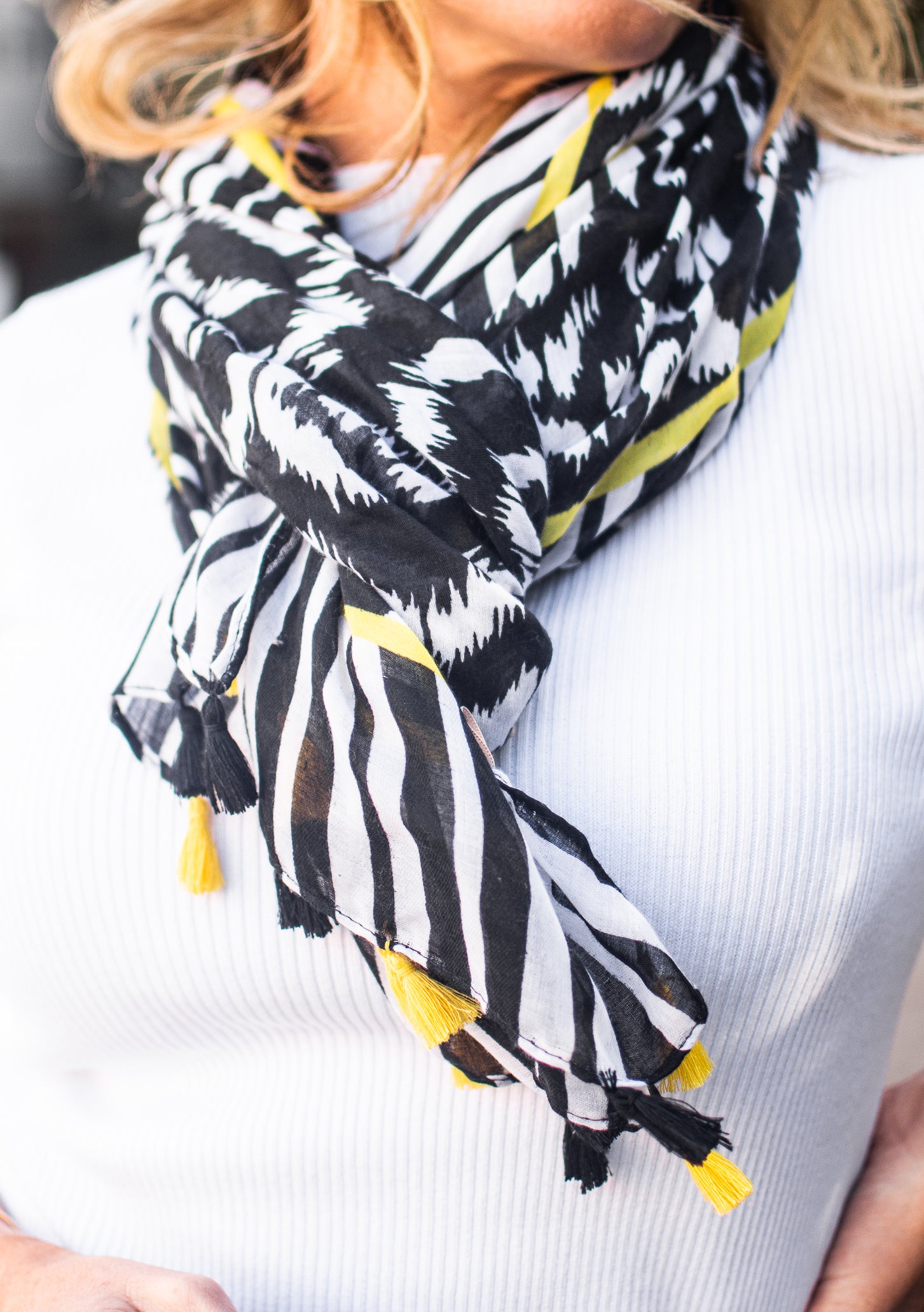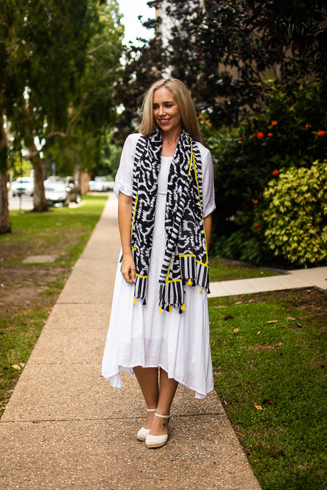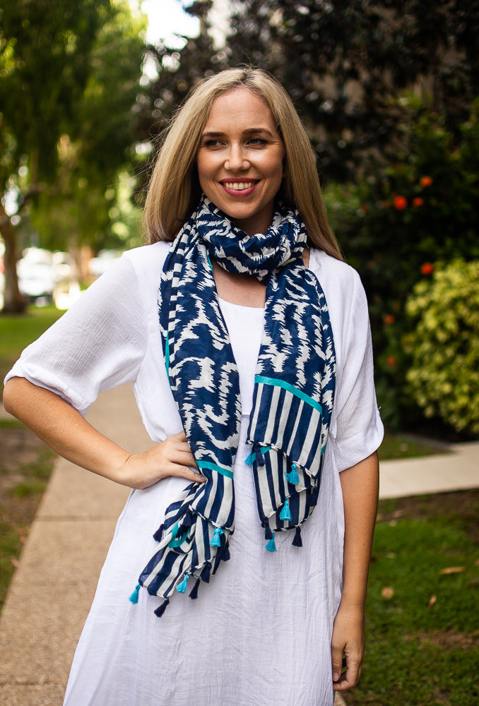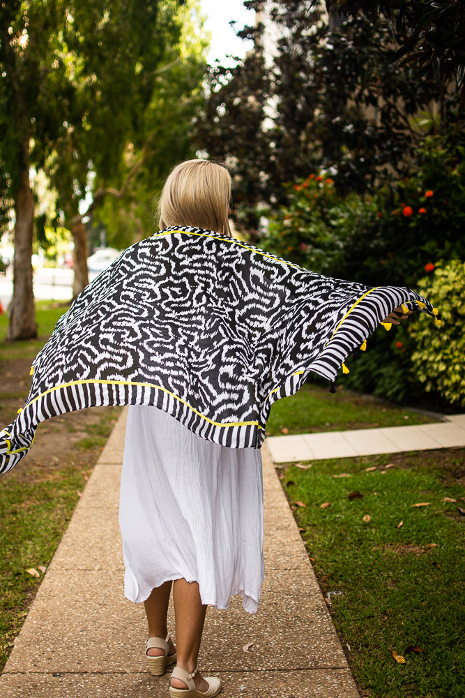 Willow Tree African Print Tassel Details Scarf Black Free Size