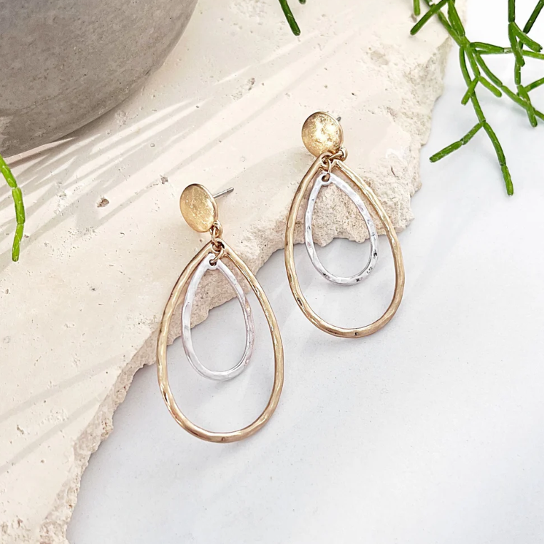 Introducing our charming Alfie earrings, exuding an enchanting antique allure with their distressed metal finish. The captivating combination of silver and gold creates a timeless and sophisticated look, adding a touch of vintage elegance to any ensemble. Embrace the unique character of these earrings and enjoy their timeless appeal.