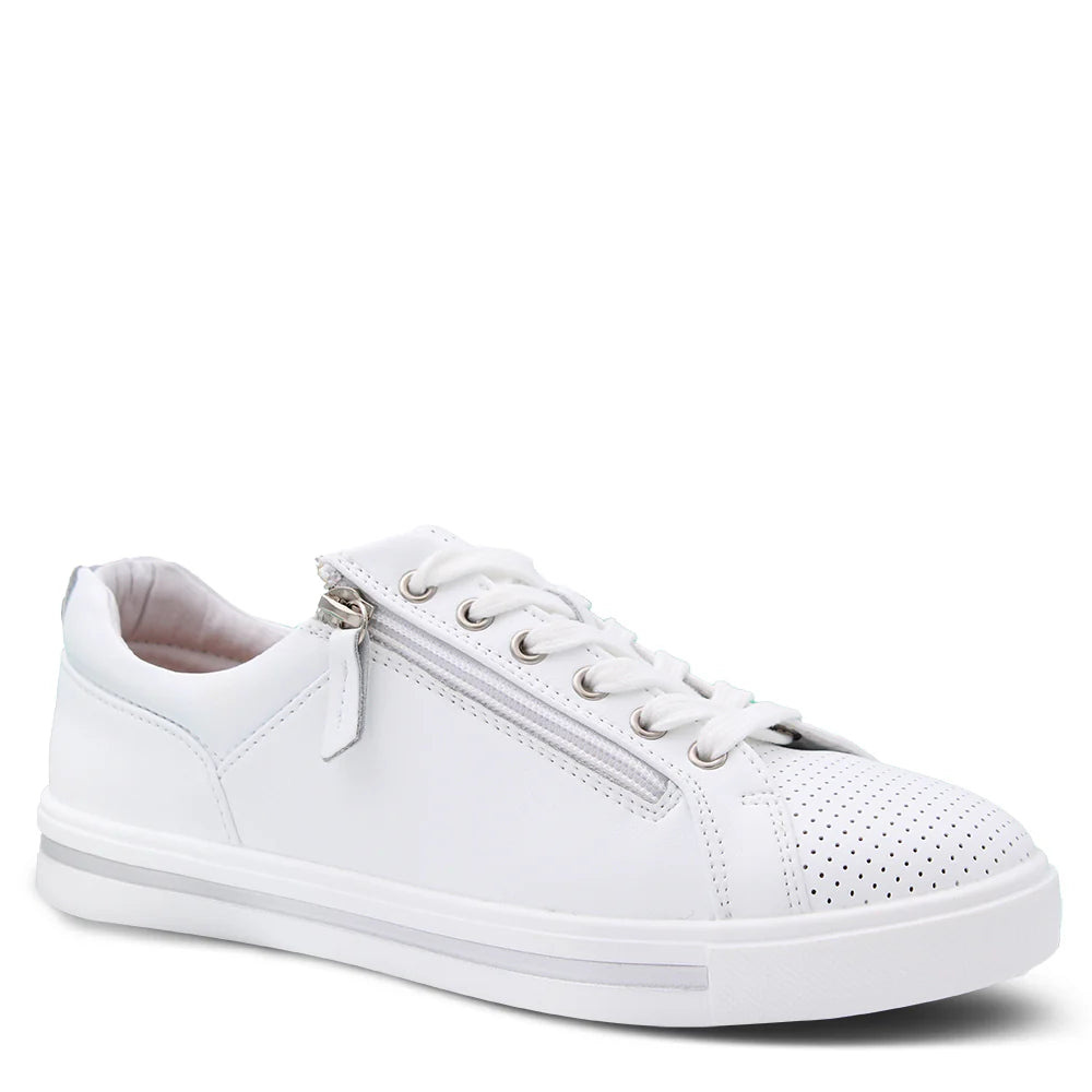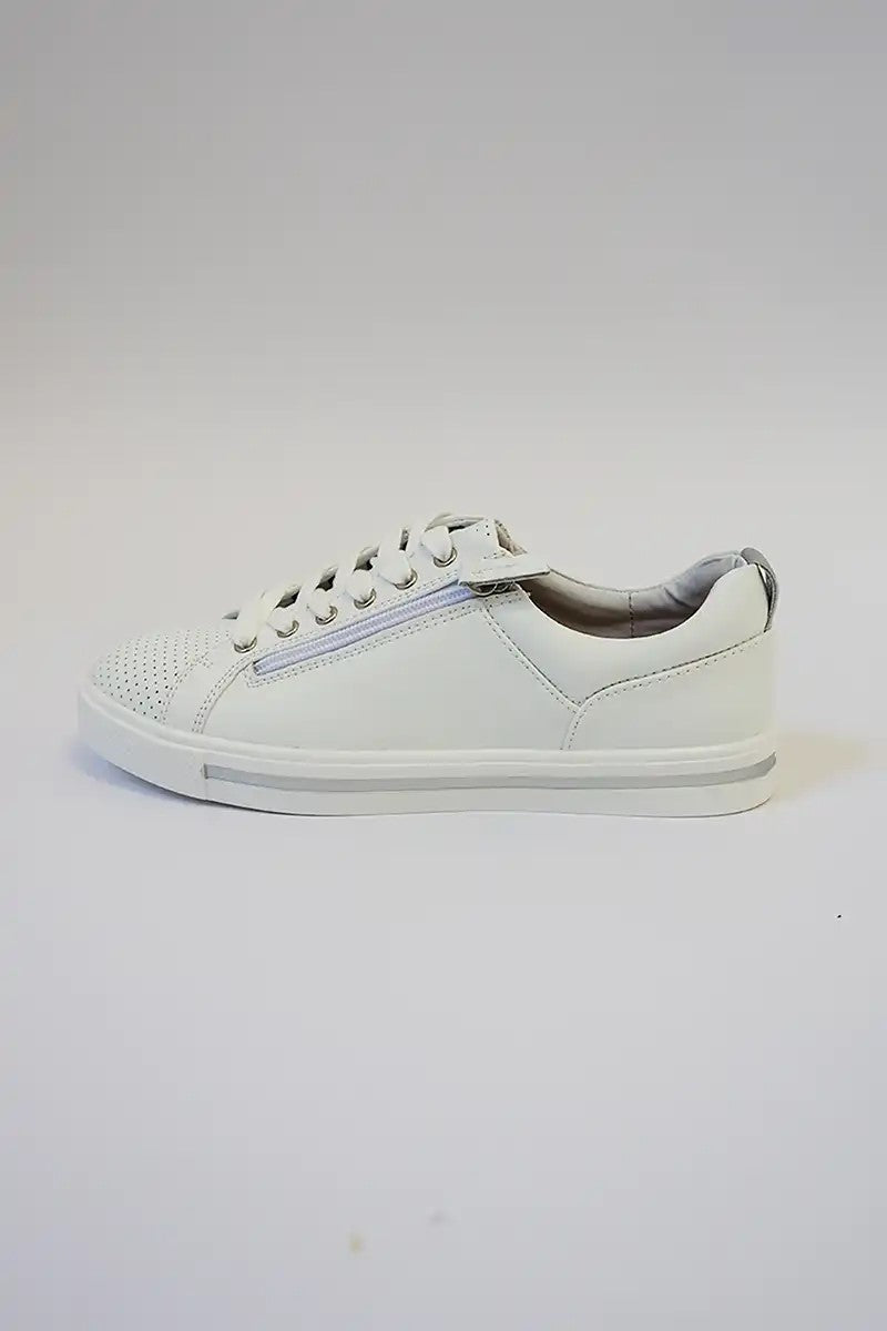 This shoe features a leather upper and sock, with a synthetic sole for ultimate comfort. The lace up design is accompanied by a convenient zip side for easy slip on access.