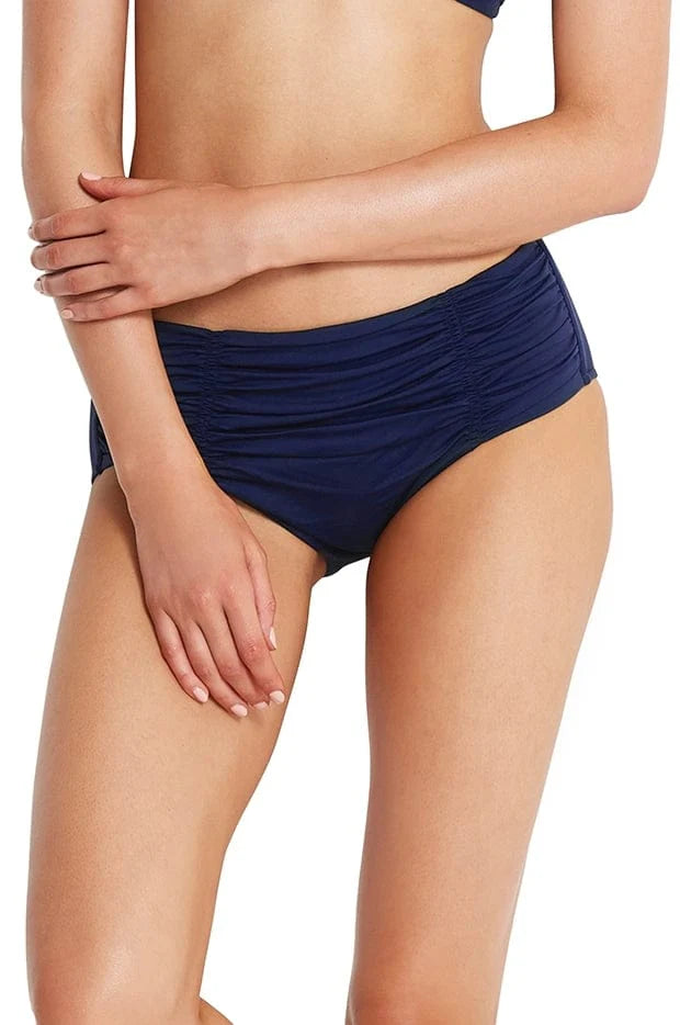 The Seafolly Collective Gathered Front Retro Pant is a full pant coverage bikini bottom complete with a mid-rise waistline for an effortless shape.