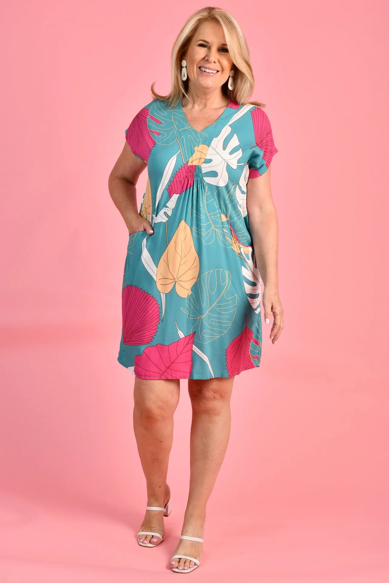 Bodacious Lovina Magic Monstera Teal Dress Teal Floral S