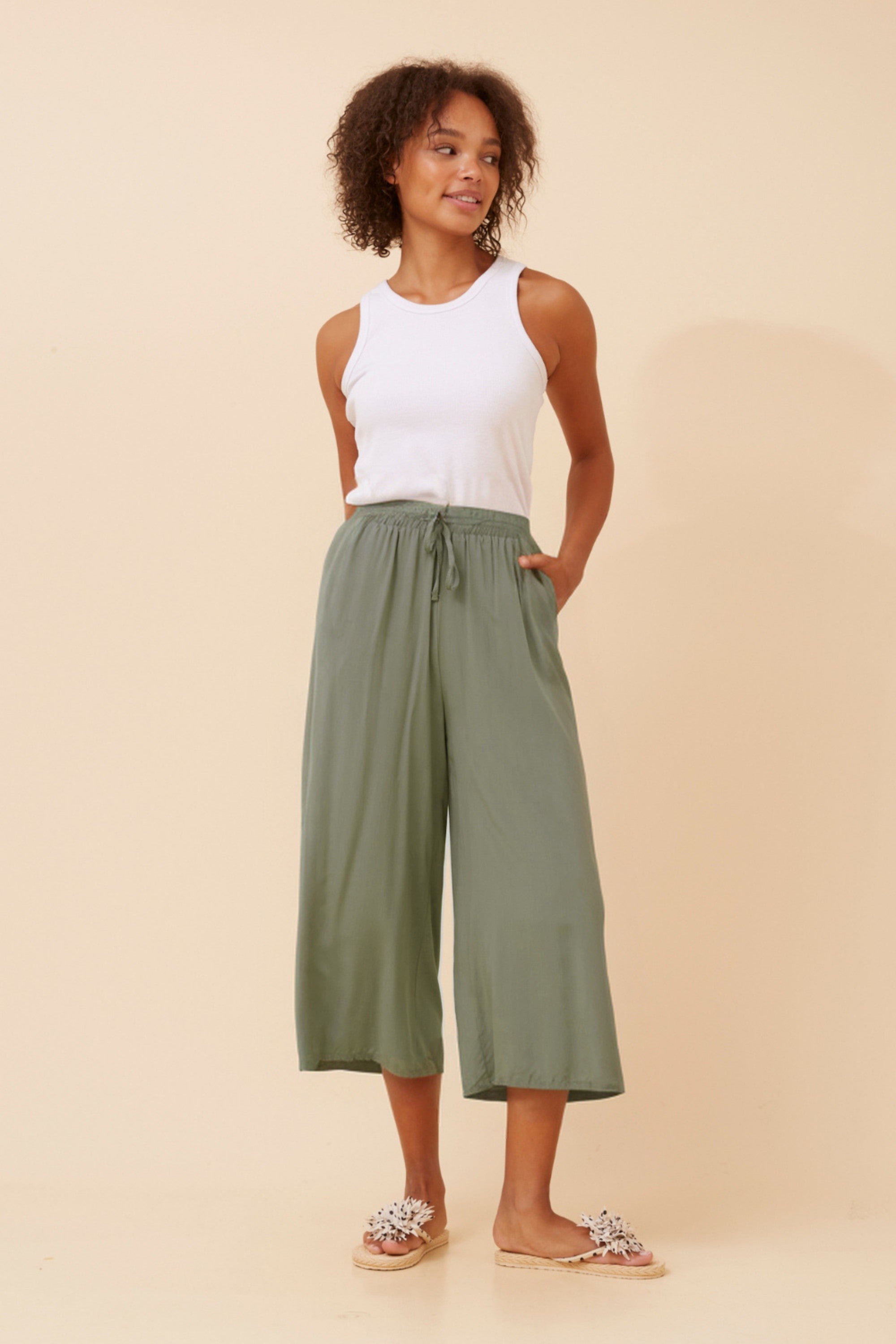 Caroline Morgan Wide Leg 7/8 Pant Khaki 8