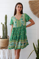 Dreamcatcher Eleanor Babydoll Green Short Dress Green Floral