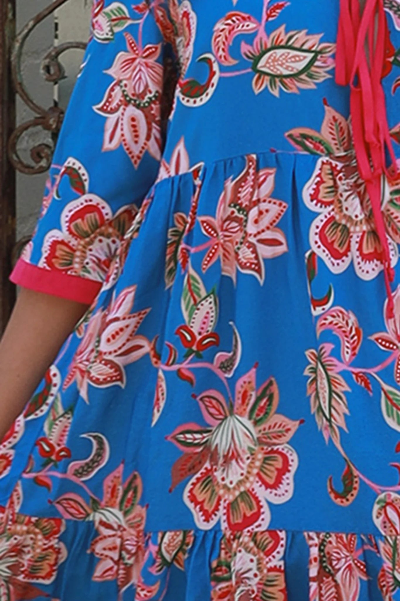 Dreamcatcher Savannah Tie Front Babydoll Mini Dress Blue Pink Floral