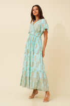 Caroline Morgan Aqua Foil Print Tiered Dress Aqua 8