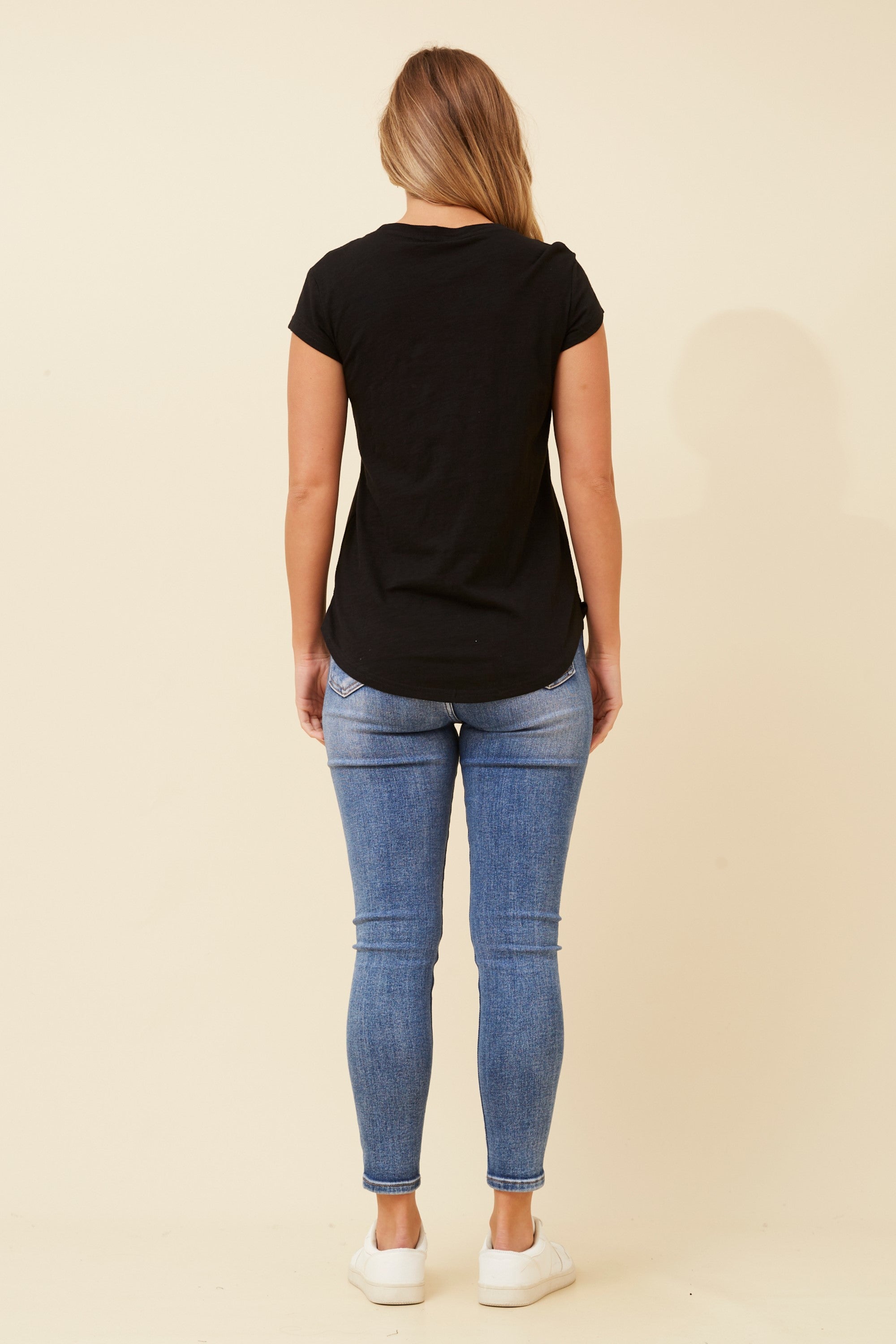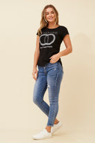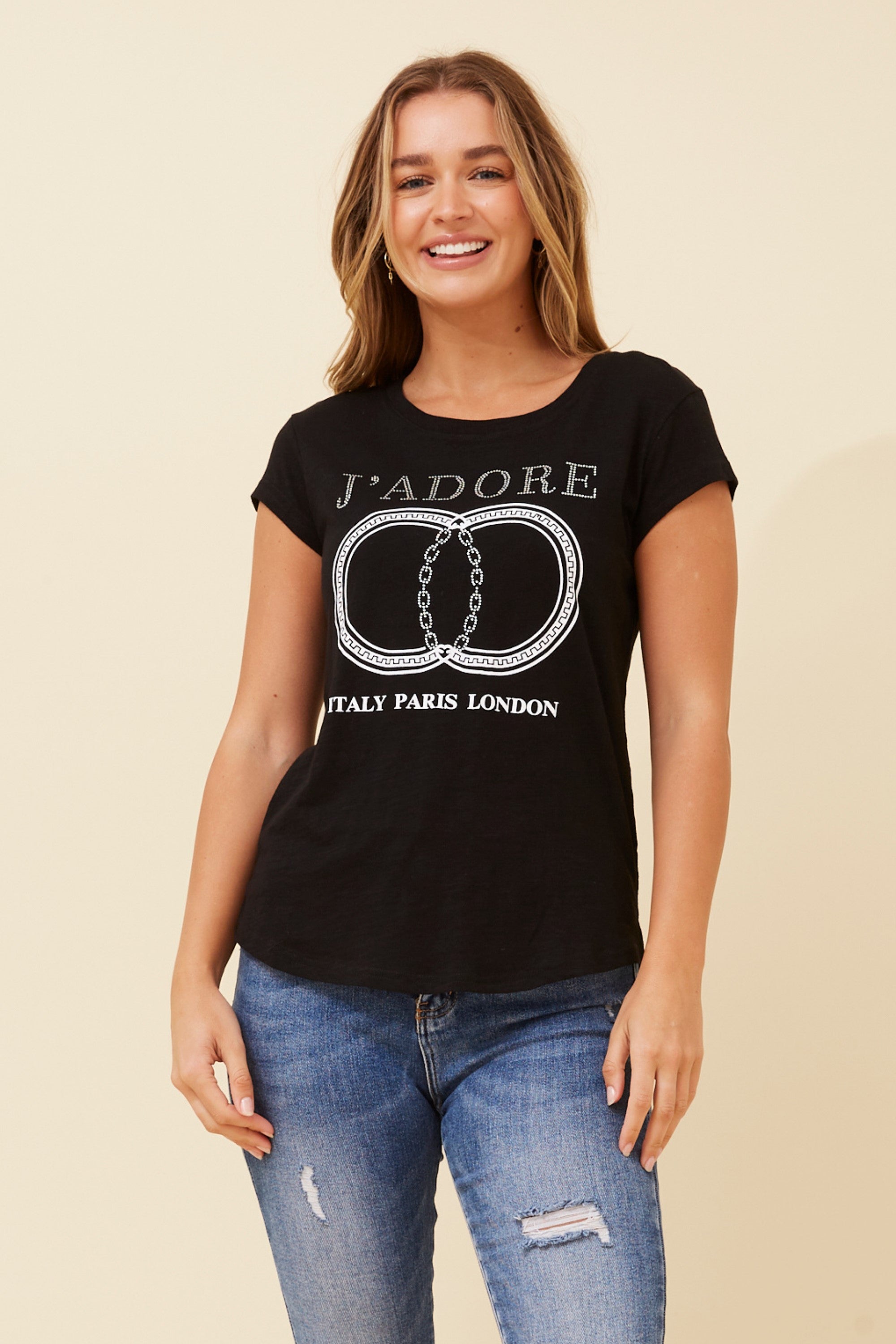 Caroline Morgan Cap Sleeve JADORE graphic pattern T Shirt Black 8