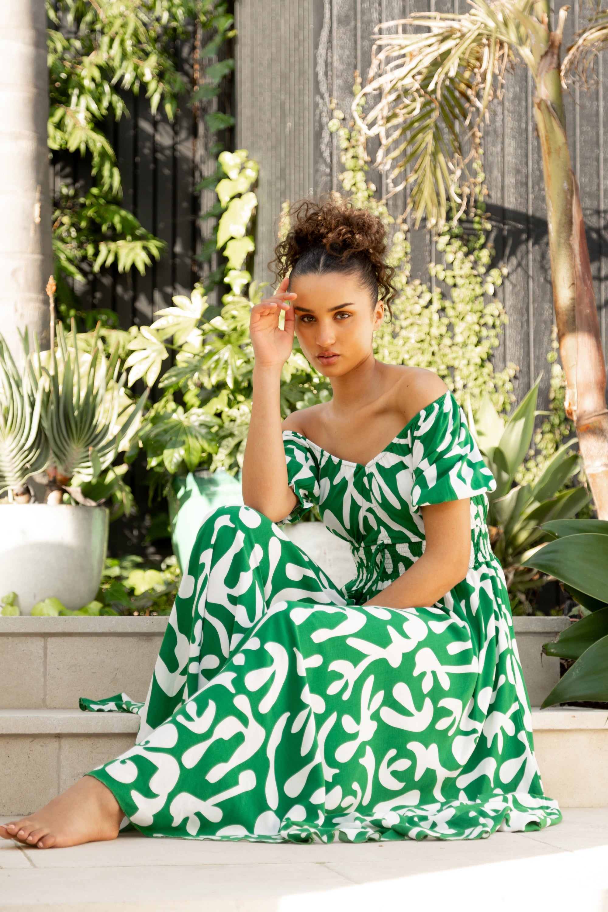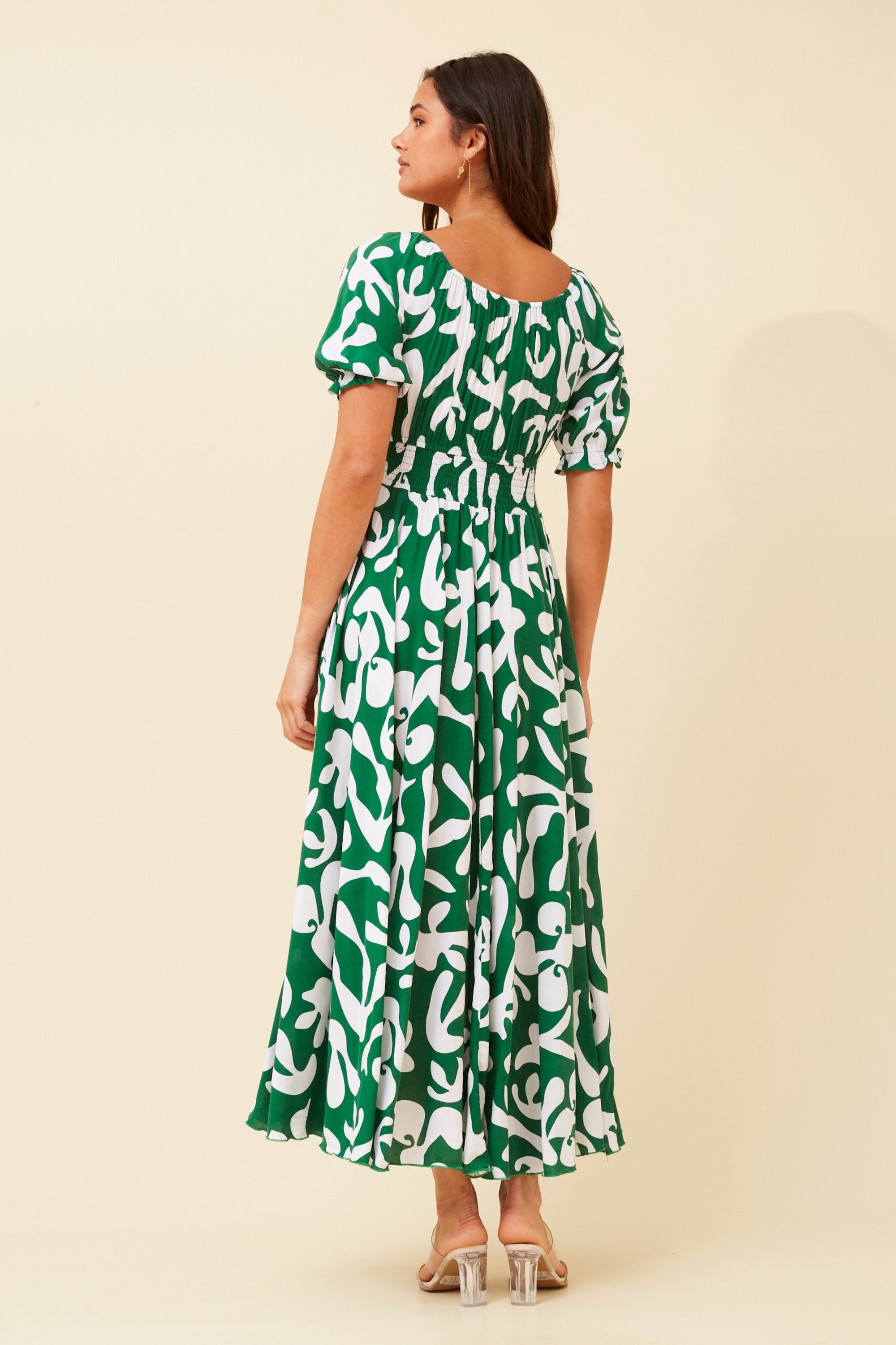 Caroline Morgan Shirred Waist Maxi Emerald Abstract 8