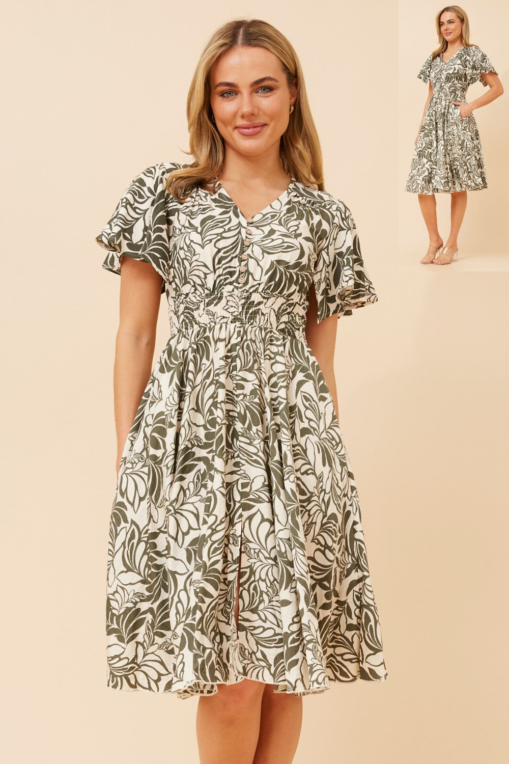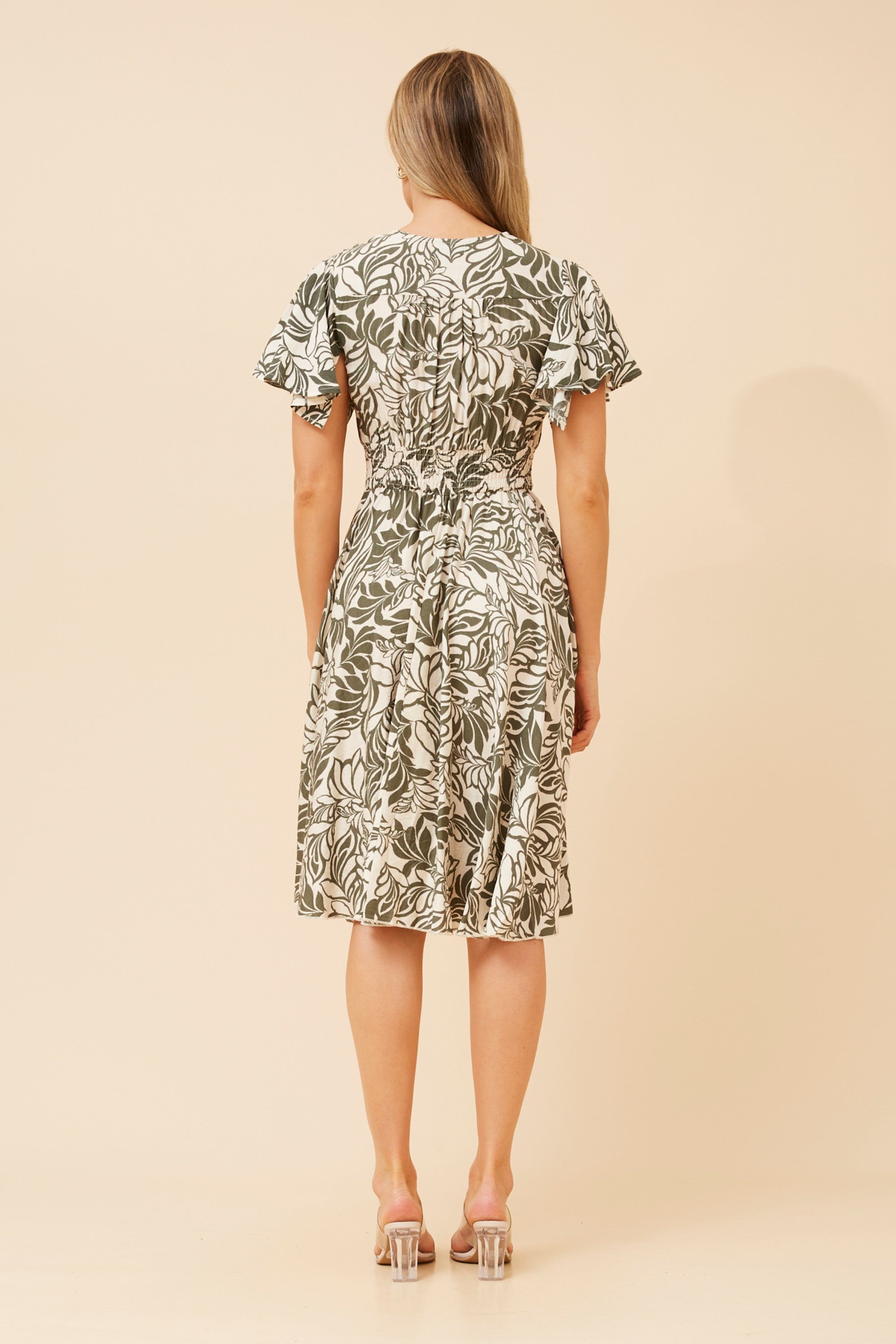 Caroline Morgan Leaf Print Dress Khaki Print 10