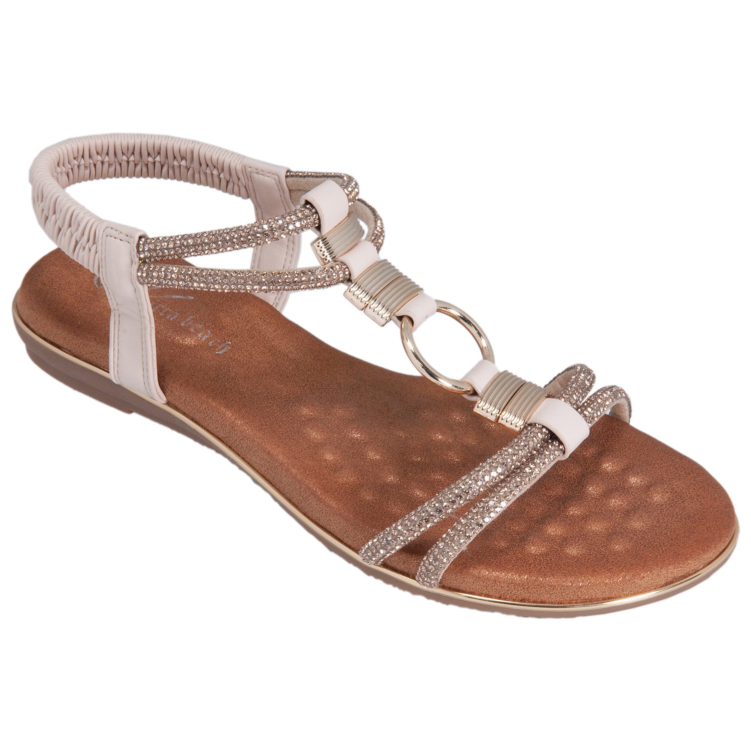 Expertly designed for both style and comfort,Kirra Beach Sony Blush Sandal is a must-have for any fashionable wardrobe. Featuring an elasticized back strap this sling-backed slip-on sandal offers a secure and comfortable fit. Embellished with diamante jewels and gold buckle details, along with a soft padded insole SONY is the perfect combination of chic and practical.
