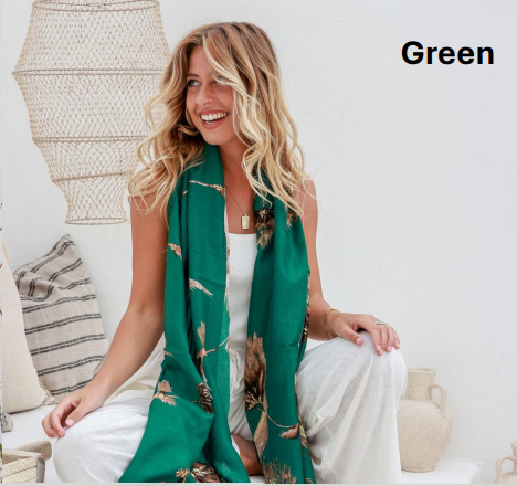 Free Spirit Gold Fleck Scarf Green Floral Free Size