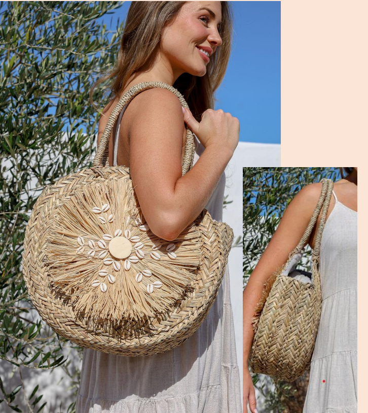 Free Spirit Lux Circle Straw Shell Beach Bag