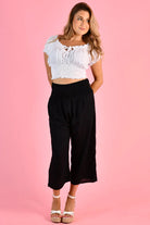 Anyone who has a pair will tell you that they are the comfiest pants around! Made from lightweight Rayon, they feature a stretchy rouched elastic waist and this cut is 3/4 length, straight through. They are quite generous in the sizing and are an absolute must-have wardrobe essential. They are an excellent option for ladies who like cool comfortable clothing, that is easy to coordinate. They are also a favourite of Mums-to-be as the elastic rouching has enough stretch to accommodate a growing tummy.