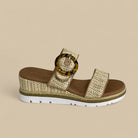 Step into effortless summer style with these chic Bay Lane Riverton woven wedge sandals. Designed for both comfort and sophistication, they feature a natural raffia-inspired texture and two wide supportive straps for a secure fit. The upper strap is accented with a bold buckle, adding a refined touch to this casual silhouette. A soft cushioned footbed ensures all-day wearability, while the sturdy wedge heel provides just the right amount of lift for a flattering look.