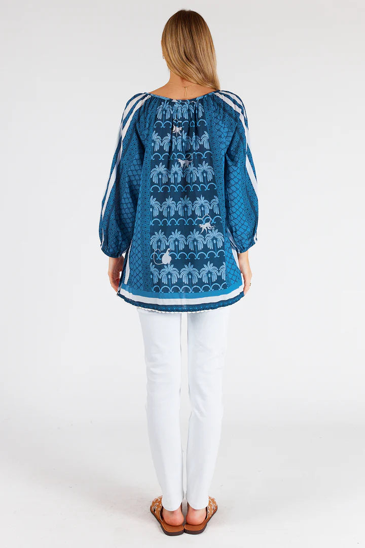 This top features a relaxed fit with a round neckline and V-neckbands, as well as shirring over the shoulders to create gathers. Made from 100% cotton, it also boasts a curved hem and is designed in Australia.