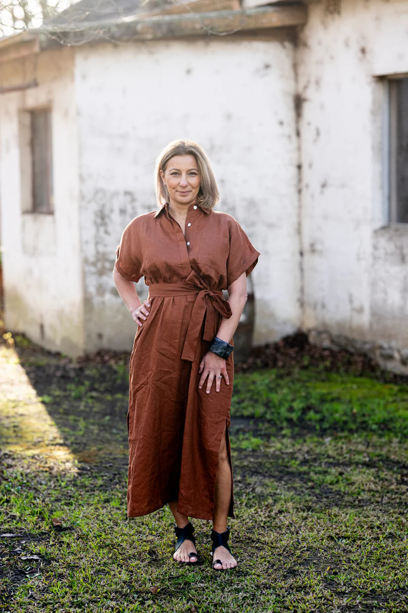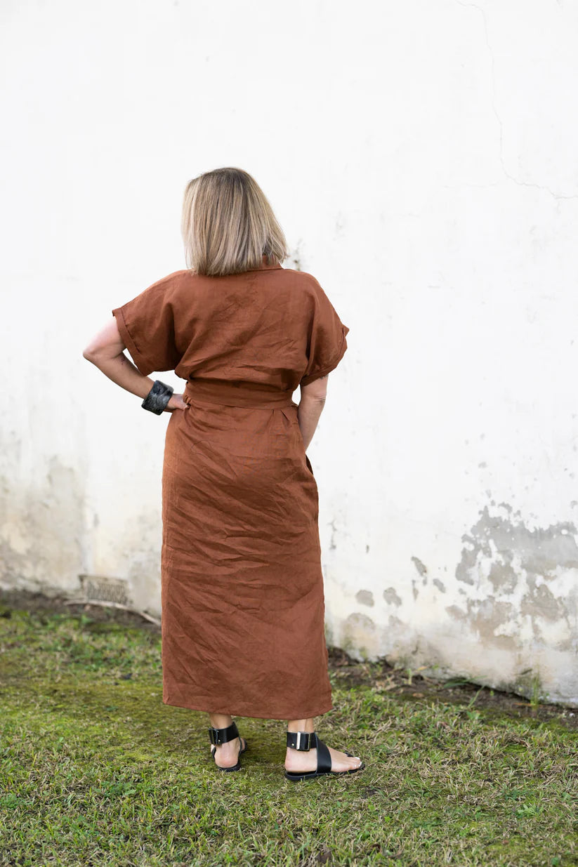 Don't Tell My Husband Linen Martha Shift Dress Bronze XS