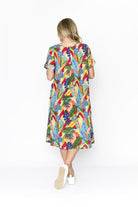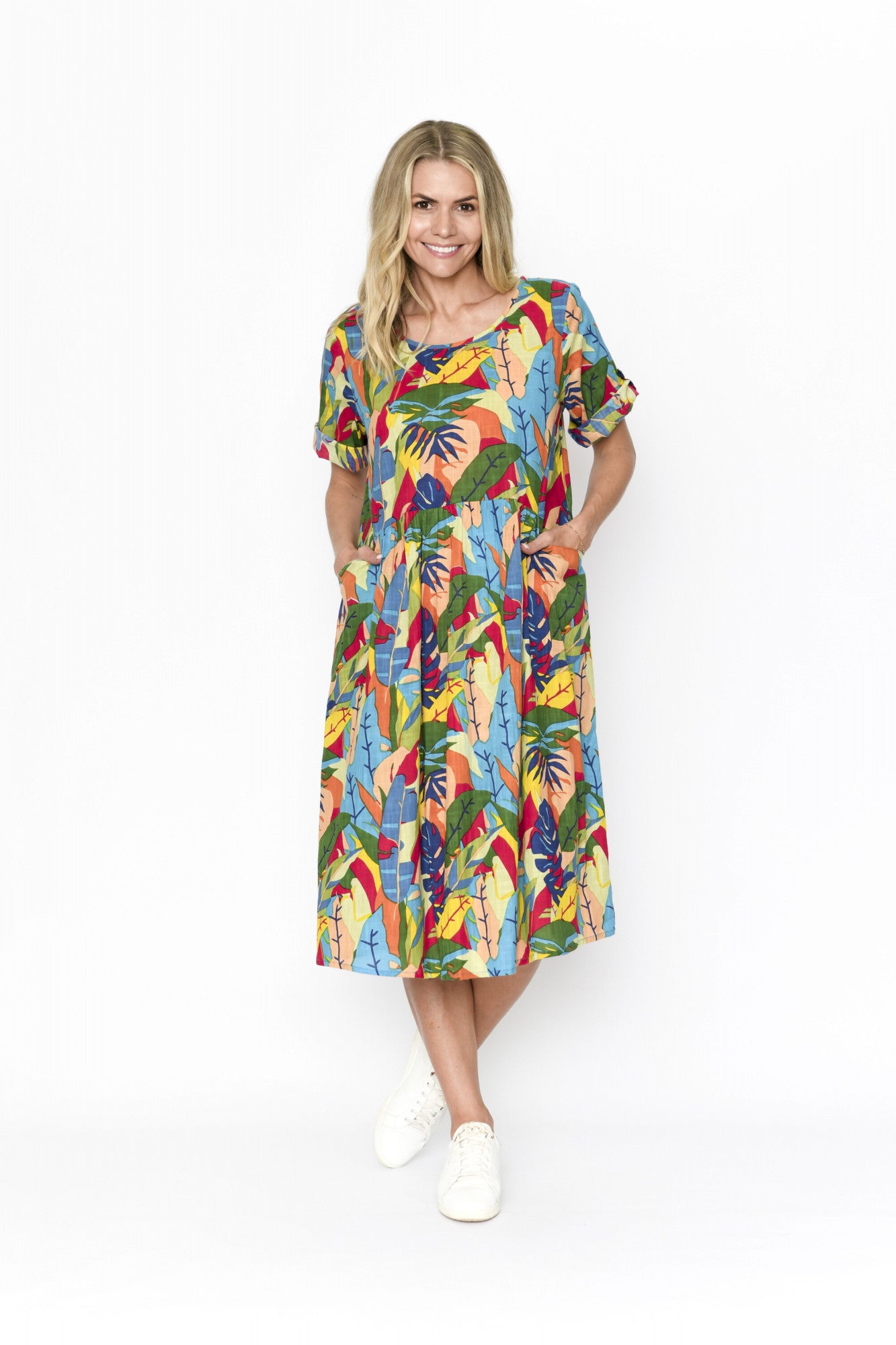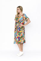 Introducing our beautiful Yvonne Knee-Length Dress, designed for summer bliss. Featuring a flattering round neck and 3/4 sleeves, it boasts stunning prints that capture the essence of the season. Crafted with a cotton slub for comfort and style, this dress effortlessly transitions from day to night. Embrace sunny days in elegance and ease with this essential piece from our summer collection