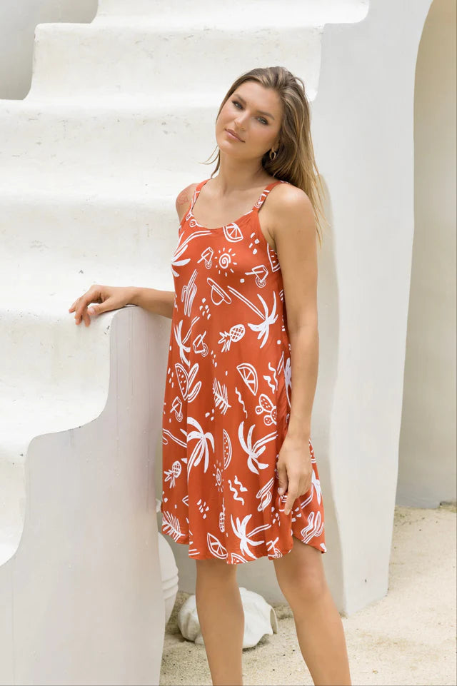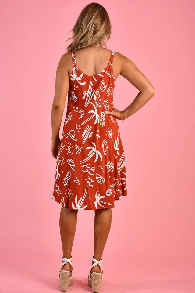 Go Girl Margot Wide Strap Tropical Dress Rust S