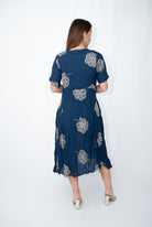 jolie Saule Floral Embroidered Paneled Short Sleeve Dress Navy 8
