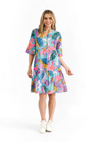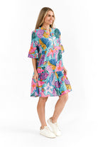 Elevate your summer style with our vibrant Maya. Made from a cotton slub, this dress creates an effortless but chic feel. Featuring a subtle v neckline with buttons for coverage and versatility, and a beautiful ¾ frill sleeve. Embrace the season in chic comfort, perfect for sunny days and cool evenings