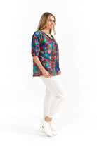 Embrace a burst of vibrant color and captivating design with the Tessa V-Neck Tassel Top. Crafted from 100% breathable cotton, this top offers a wonderfully relaxed fit, ensuring all-day comfort and easy movement. The stylish V-neckline is beautifully accented with playful tassels, adding a charming and bohemian touch that perfectly complements the intricate pattern. Featuring elegant 3/4 sleeves, the Tessa Top is designed to be both stylish and versatile. Whether you're enjoying a sunny day out or seeking a relaxed yet chic look, this top is sure to make a statement