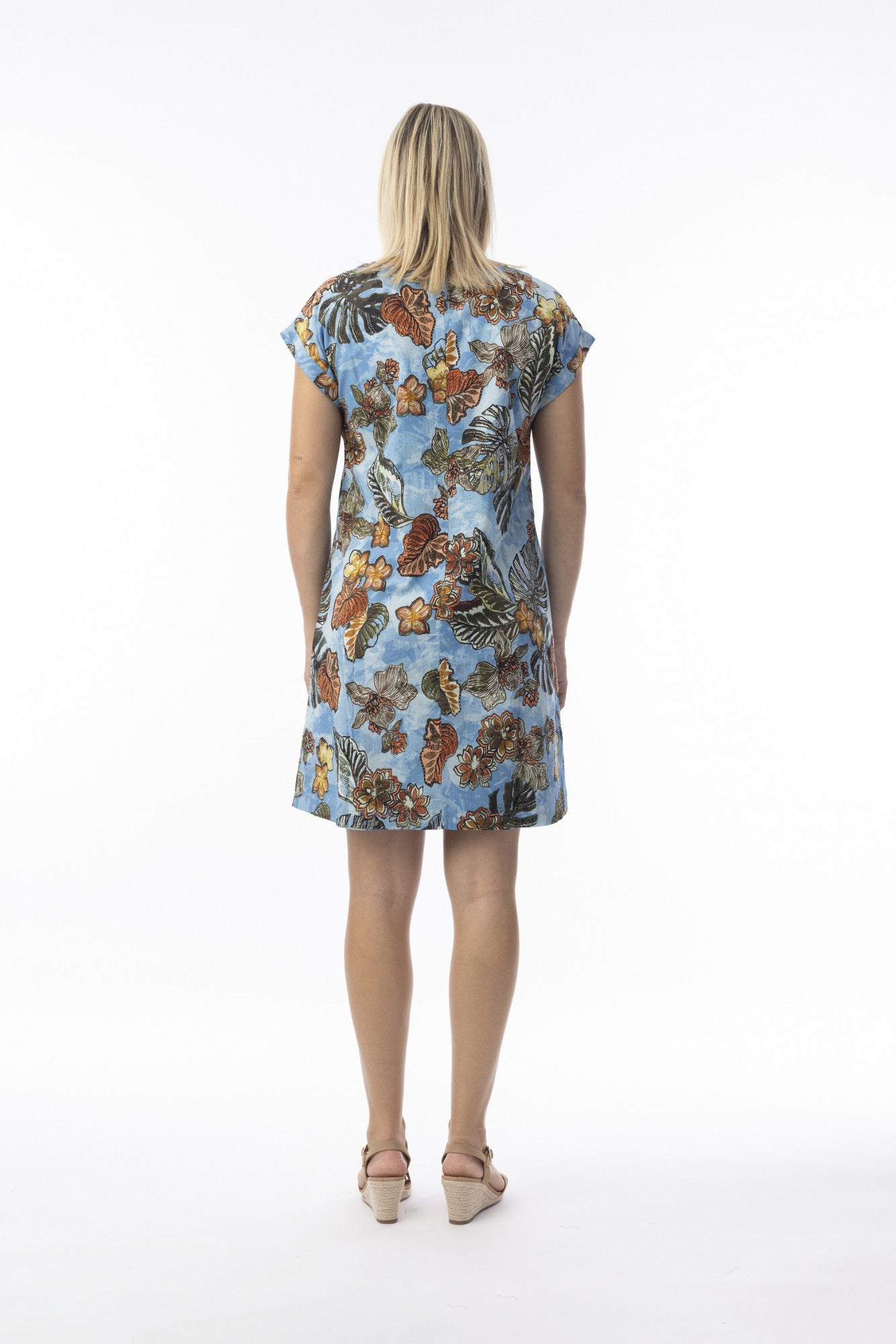 Orientique Lima Blue Reversible Short Sleeve Dress Blue Floral 8