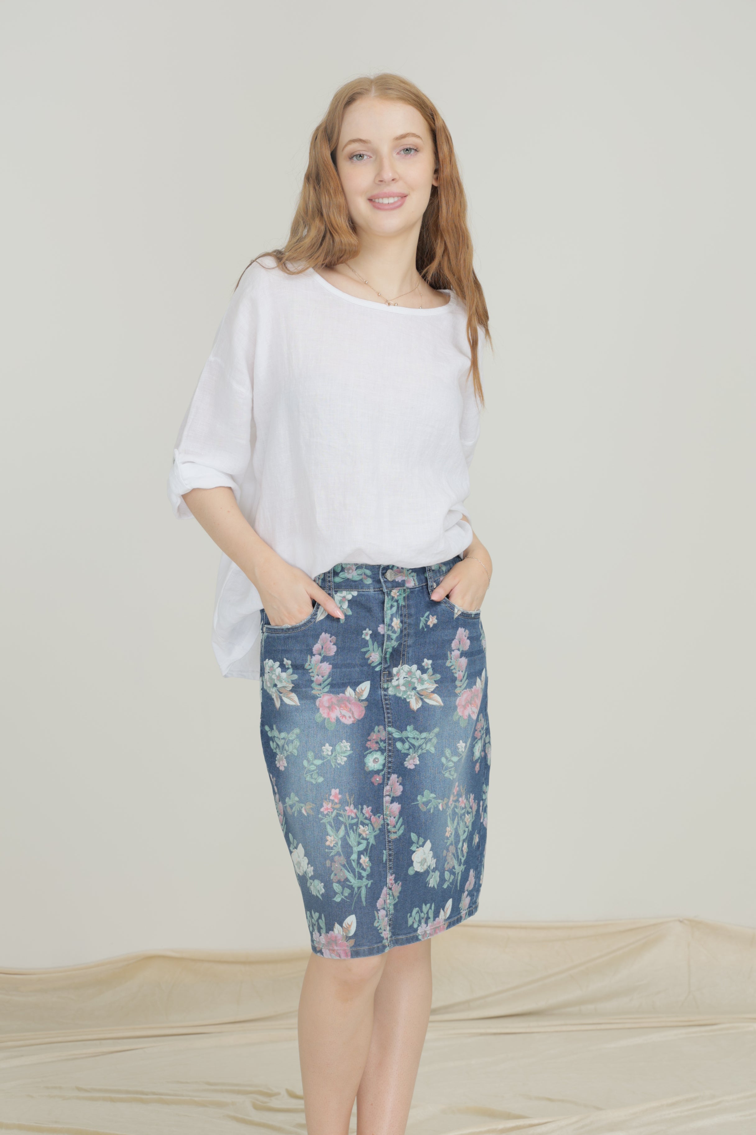Introducing the WC Denim Floral Denim Skirt – where classic denim meets vibrant botanical charm! This playful piece features an eye-catching floral print that brings personality to your everyday wardrobe. Crafted from stretch denim, it offers comfortable movement and a flattering fit that moves with you throughout the day. Perfect for casual outings, weekend adventures, or dressing up with your favourite top, this skirt effortlessly transitions from season to season. The blend of timeless denim quality with modern floral flair makes it a versatile staple that deserves a spot in every fashion lover's closet.