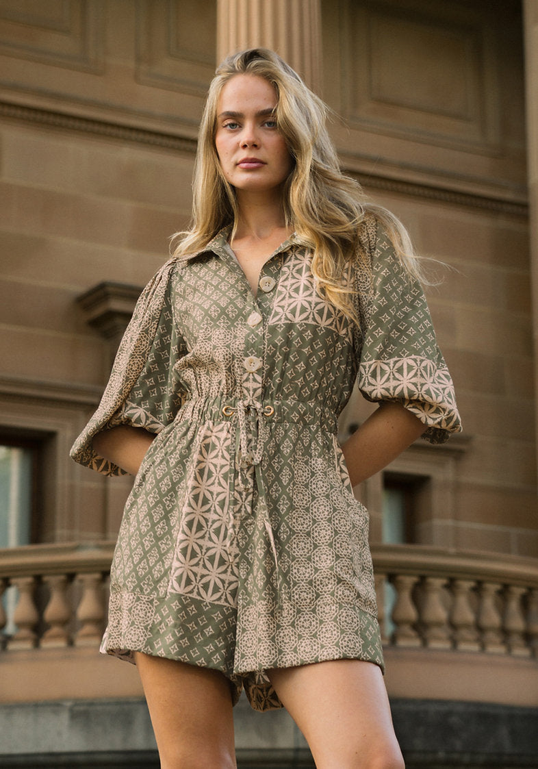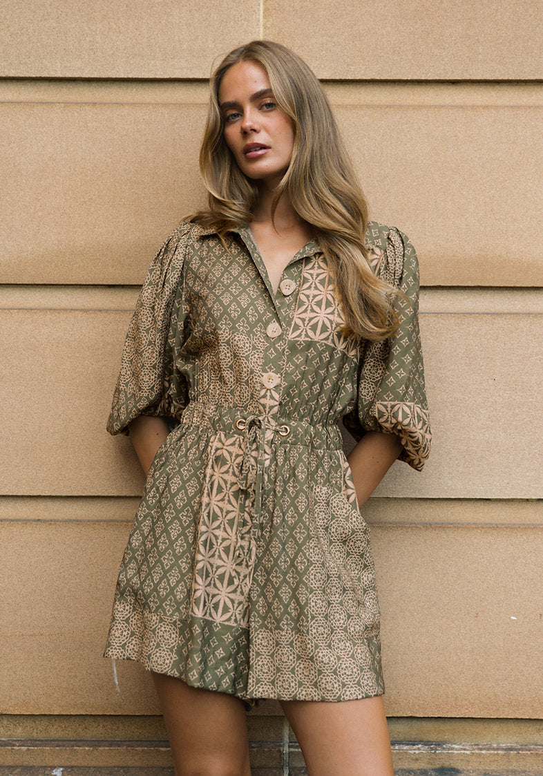 White Closet Green Batik Playsuit Green 6