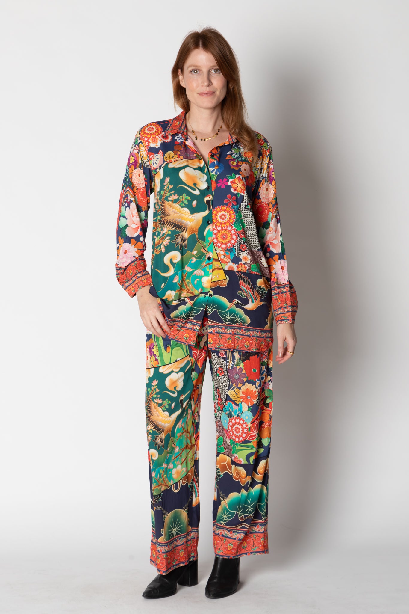 The Aiko Pant from Lula Life is perfect for the coming season! Featuring a shirred, elasticated waist with side pockets and bright, colourful print, pair with your sandals and a tank for easy holiday wear.