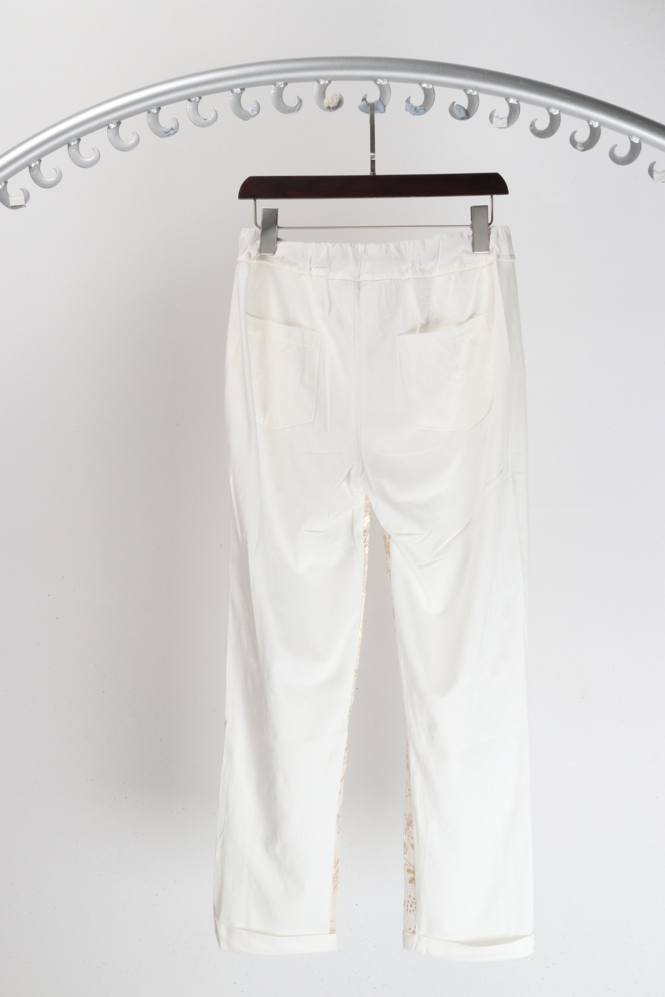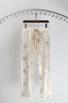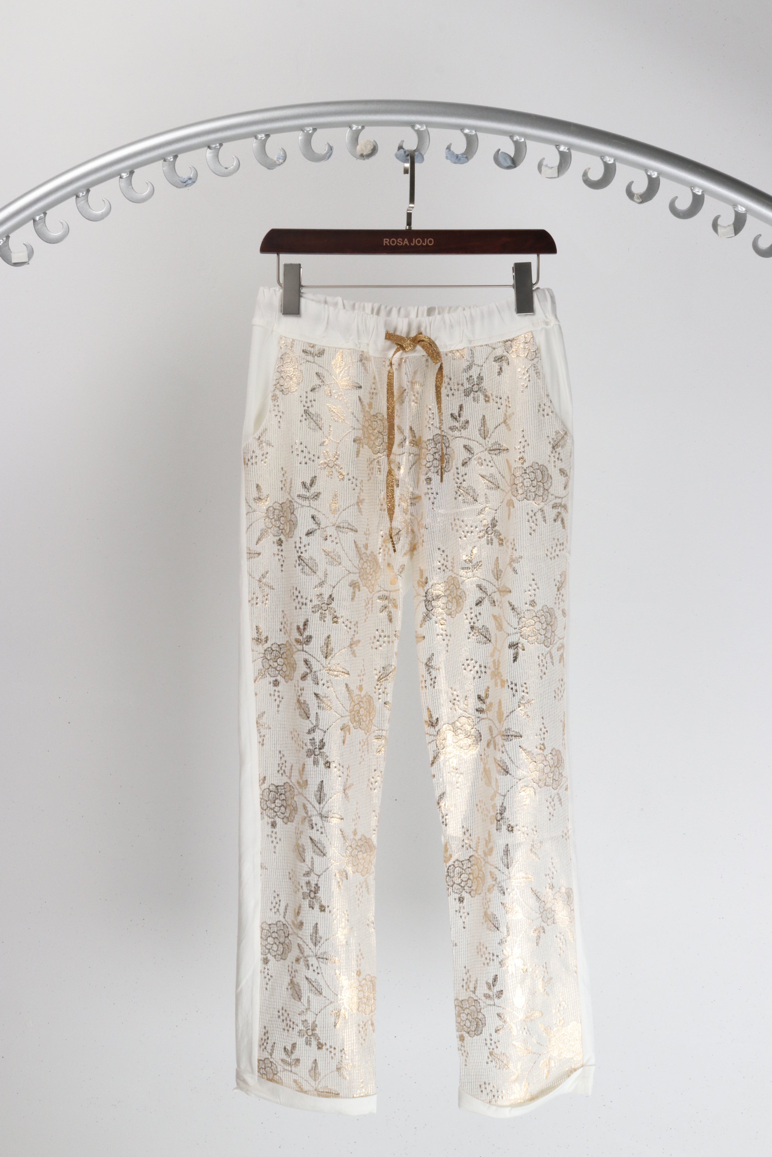 Rosa Jojo Cotton Blend Gold Floral Front Pants White Gold