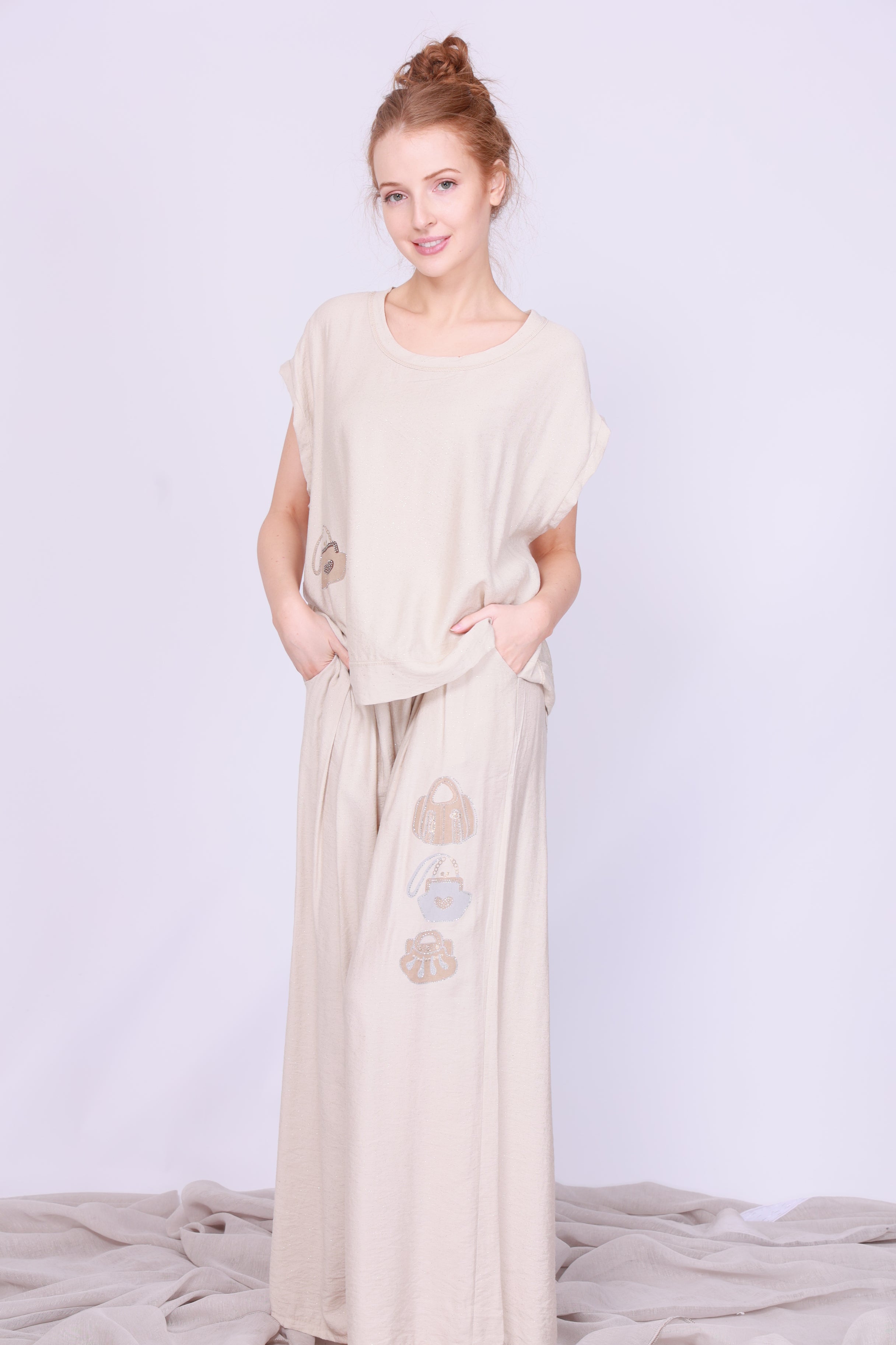 Rosa Jojo Wide Leg Glitter Detail Viscose Pants