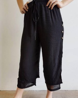 Willow Tree Wooden Button 3/4 Beach Pant Black 8