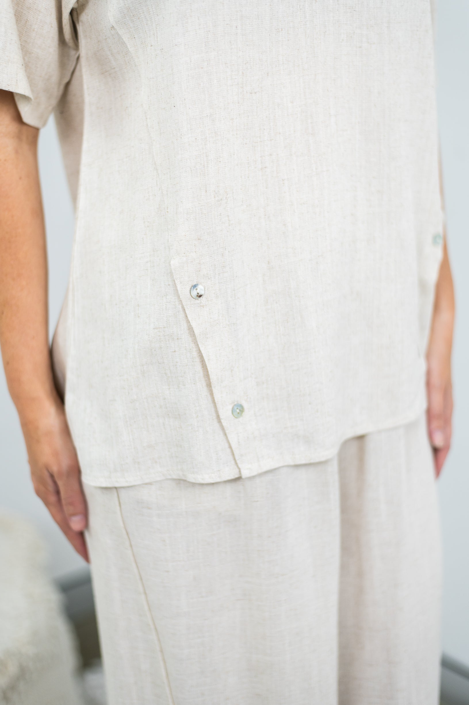 Jolie Saule Button Detail Shift Blouse Natural Beige 8