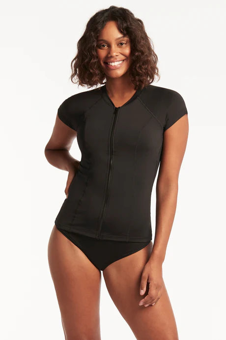 Sea Level Essentials Short Sleeve Multifit Full Zip Rash Vest Black 10