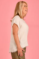 La Sofia Capri Linen Tee Natural Beige S/M
