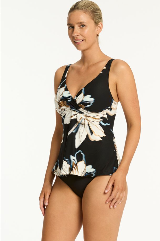 Sea Level La Luna X Front Swing Singlet Top Black Floral 10
