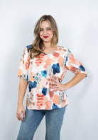 Willow Tree Leaf Print V Neck Top Peach Floral 8
