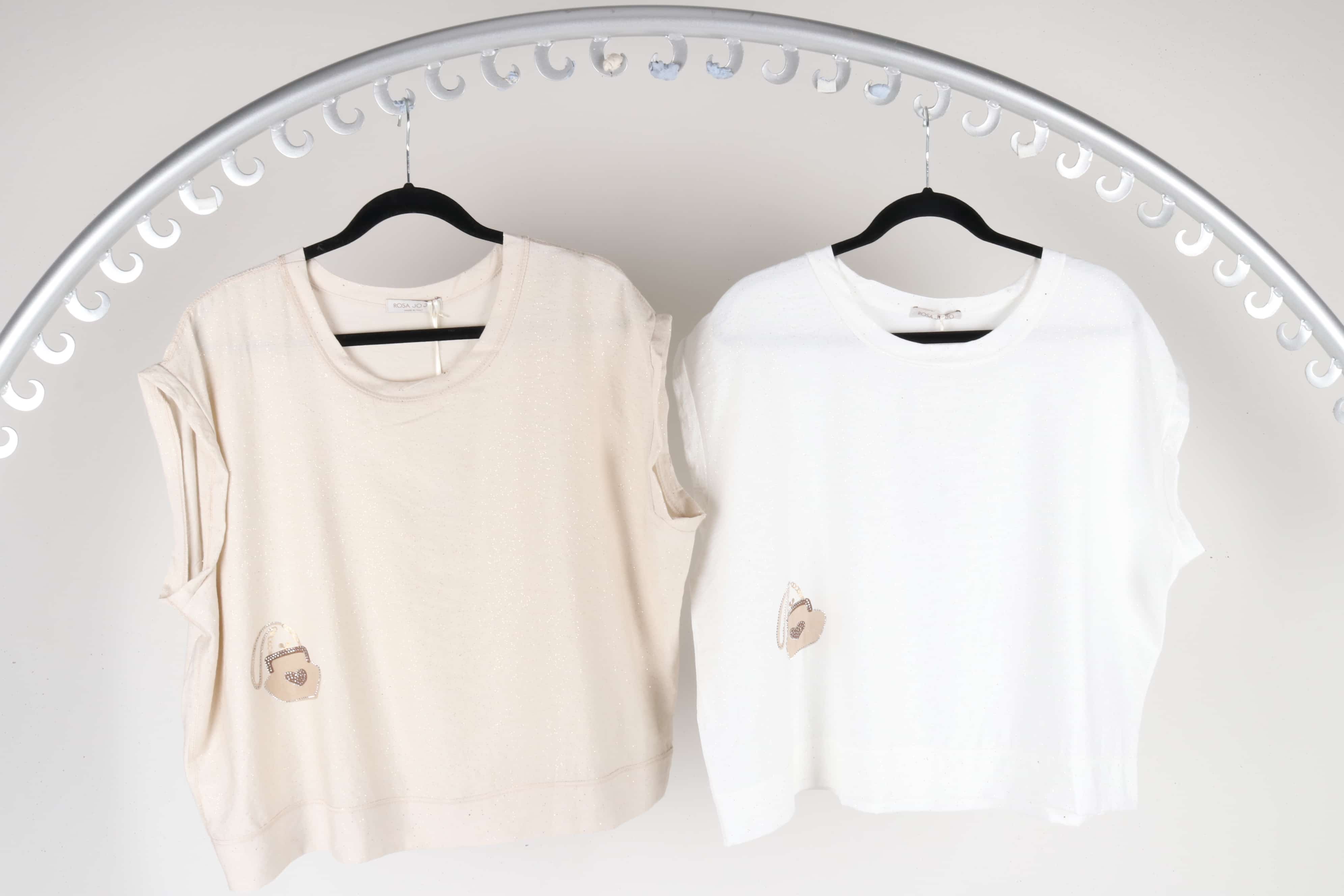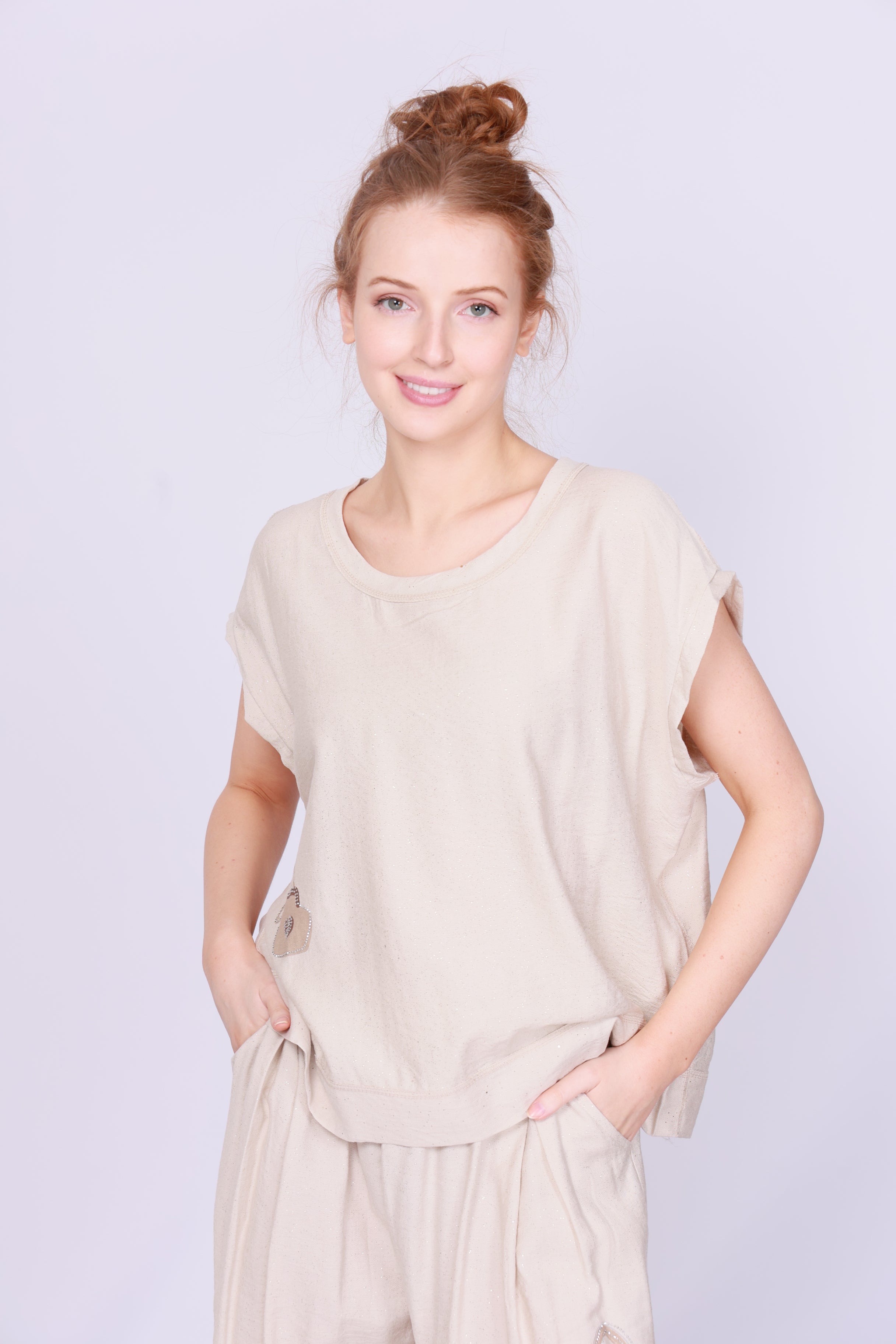 Rosa Jojo Glitter Detail Cotton Top Beige S/M