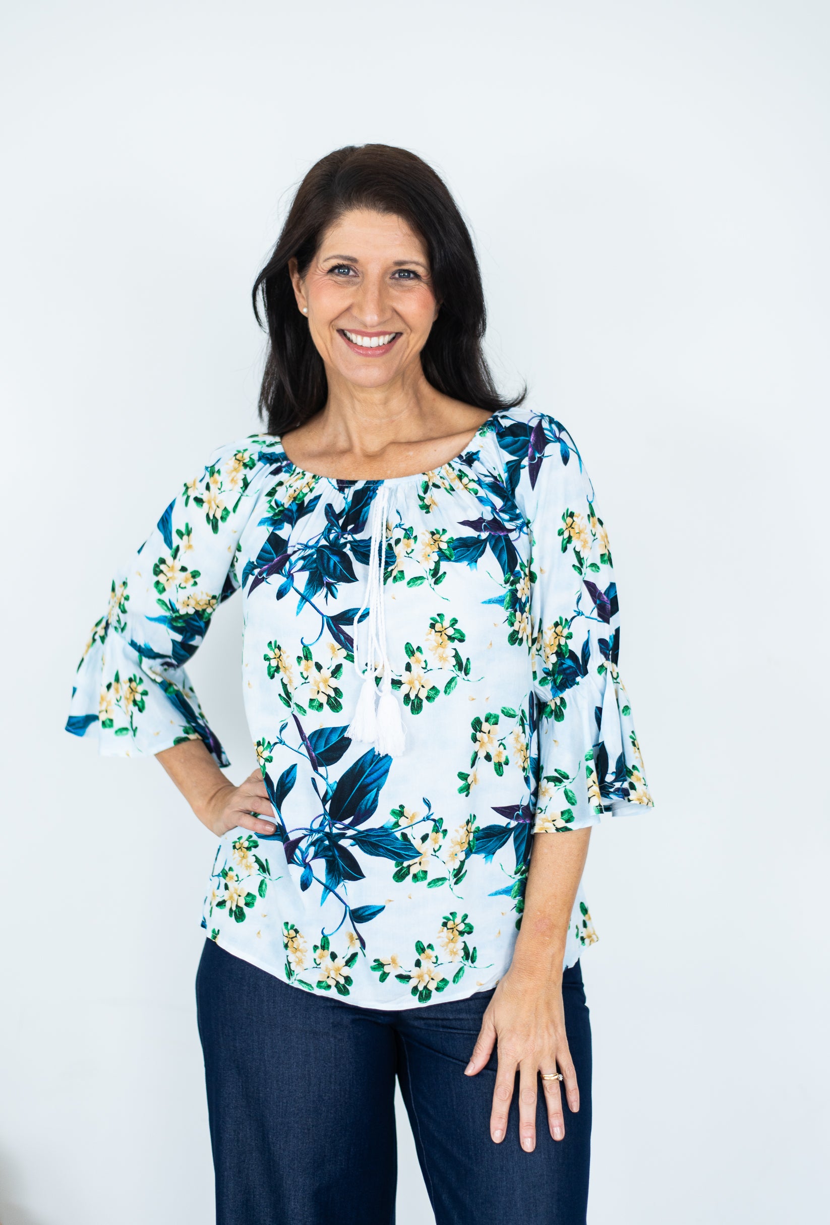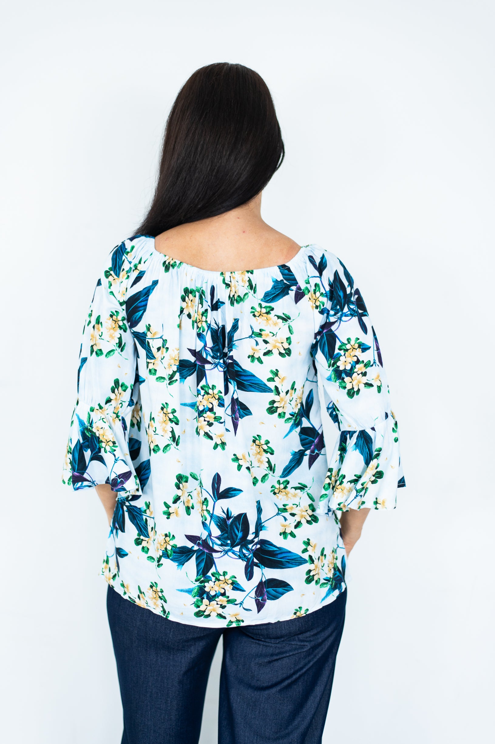 Willow Tree Floral Print Off Shoulder Top Blue Floral 8