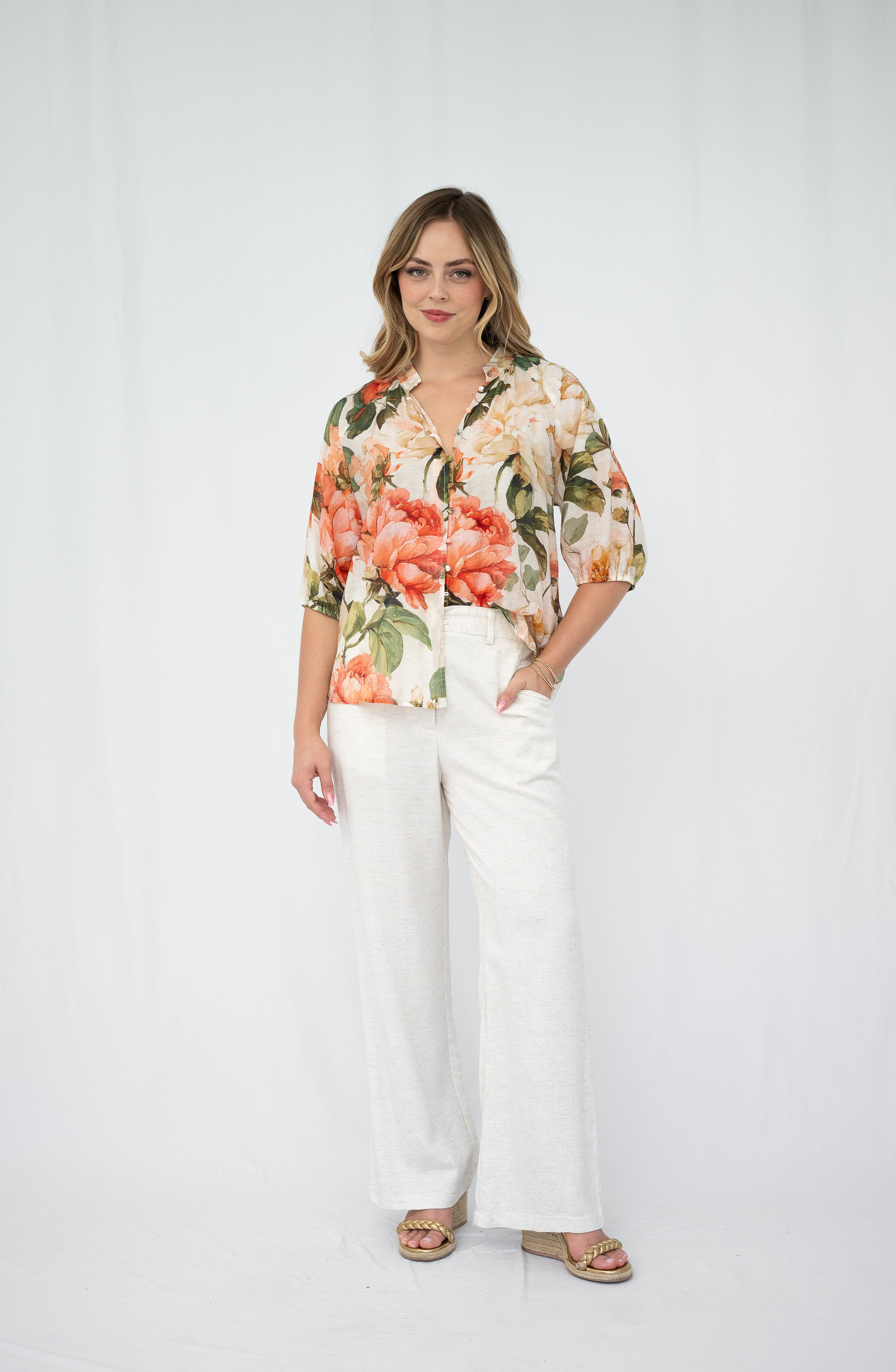 Fria Peony Floral Button Blouse Peony Coral 8